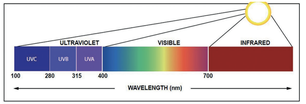 On peut diviser les rayons ultraviolets en trois catégories en fonction des différentes longueurs d’onde :
